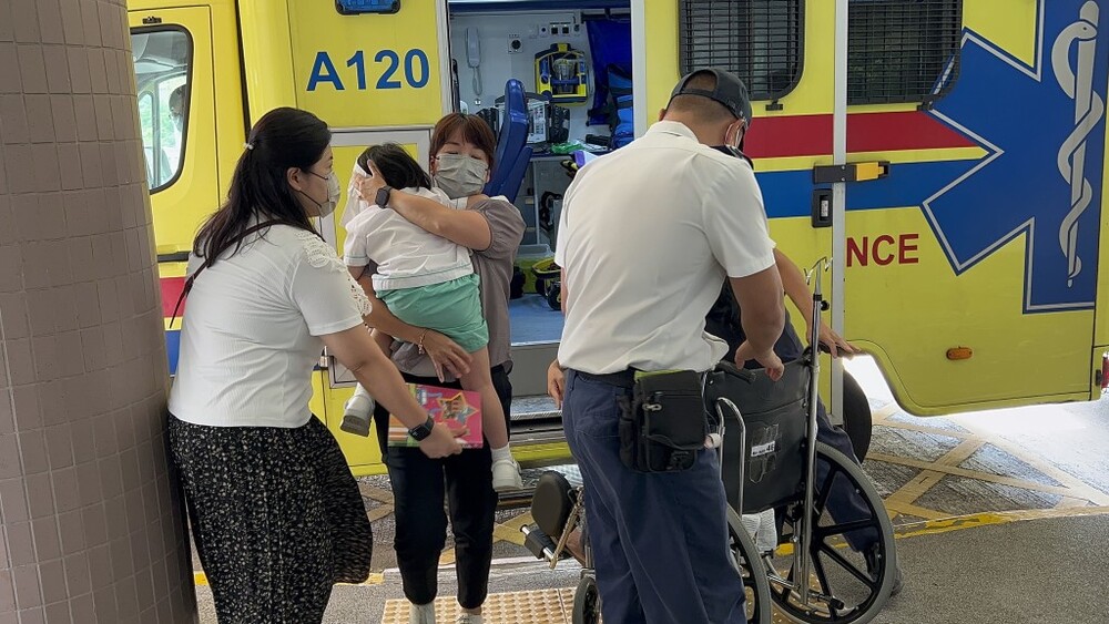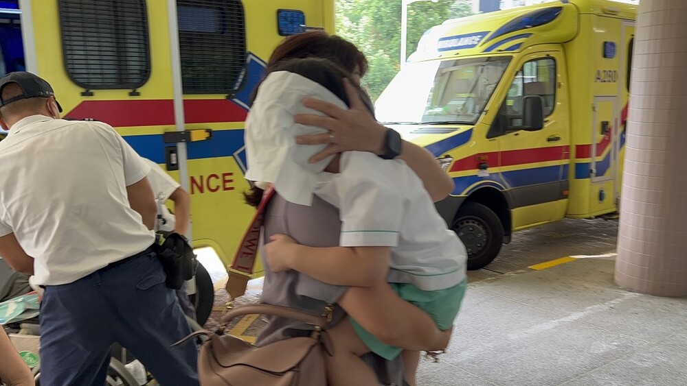 One 40-year-old woman suffered injuries to her head and leg, and one three-year-old boy who scraped his head was taken to the Ruttonjee Hospital for medical attention.