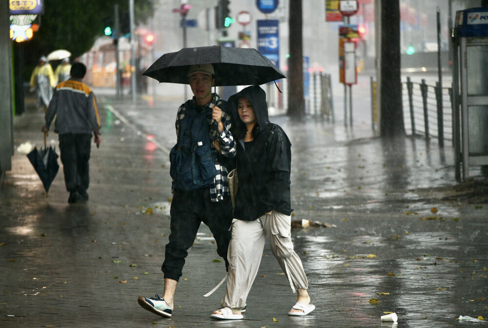 The Hong Kong Observatory said the No. 8 storm warning — the third-highest — would remain in place until 11.40 am. That alert replaced the more serious No. 9 signal, which lasted for almost five hours on Sunday night. The weather agency lowered its rainstorm warning to red — the second-highest level — from black at 10.30 am.