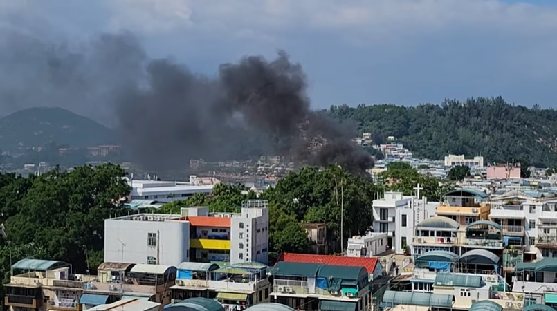 Black plumes of smoke lofted into the sky above Cheung Chau at around 1.57 pm on Thursday after a house had caught on fire.