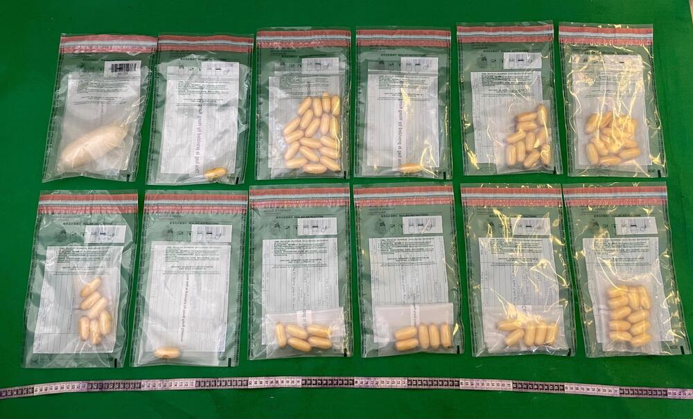 As at 3pm today (Tue), the arrested woman has excreted 74 pellets of suspected cocaine weighing about 1.3 kg in total, with an estimated market value of about HK$1.4 million.
