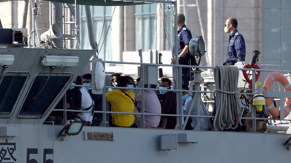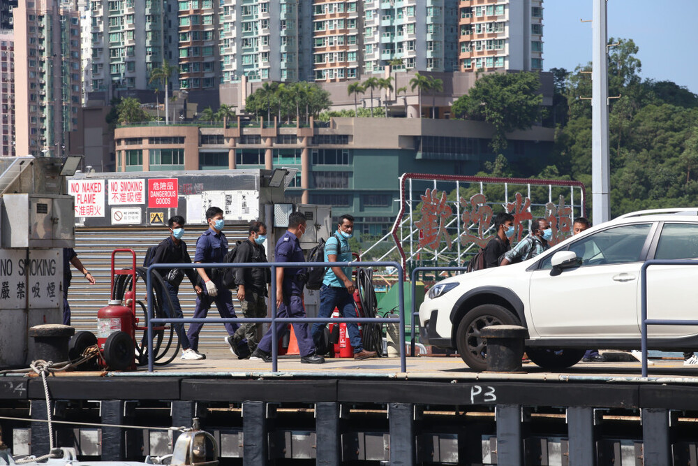Around 6 am on Sunday, fishermen in the area of Kwo Chau Islands heard someone crying for help and reported to the police. Rescuers later found nine Pakistani men on Shue Long Chau and sent them to the Sai Kung Marine Police Base.