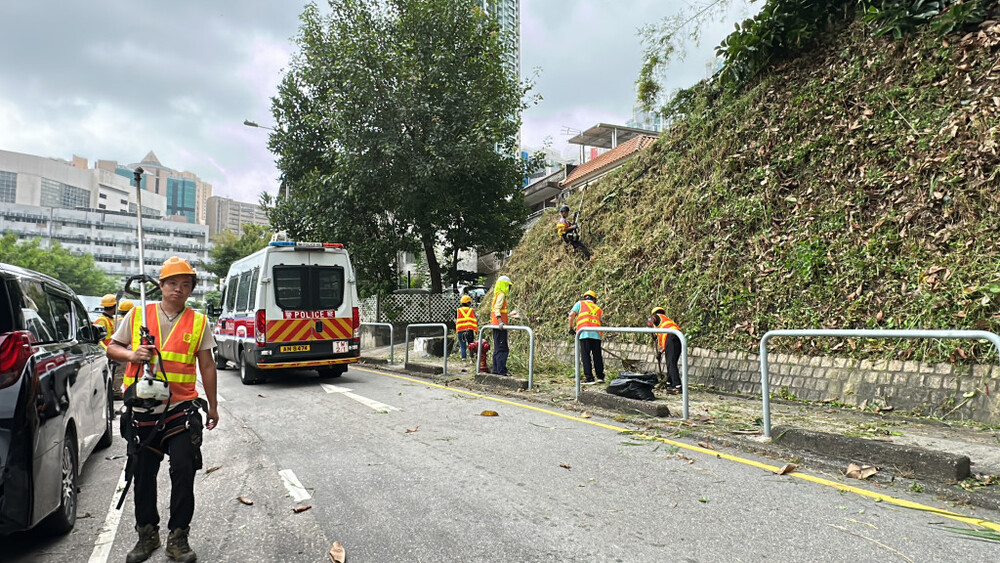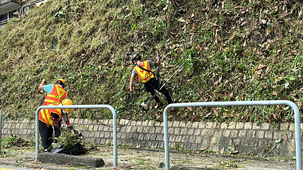 The incident occurred around 9.24 am on Saturday while he was trimming the lawn on a slope along Yau Ma Hom Road.
