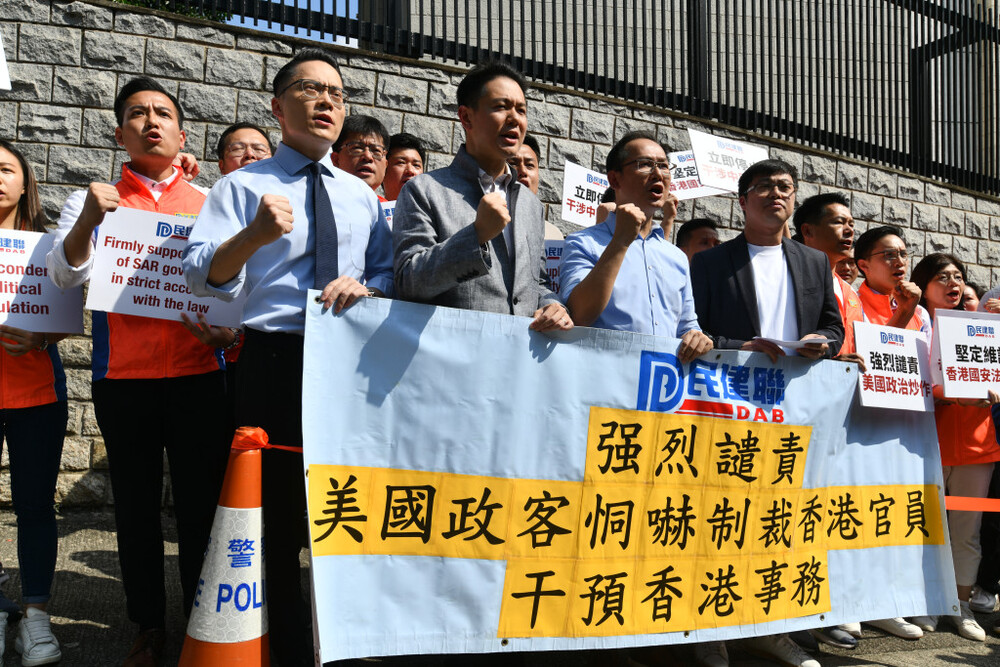 Chan Hok-fung, vice chairman of the DAB, said that the US openly interfered in Hong Kong's internal affairs, maligned and attempted to influence the city's legal system, displaying bullying arrogance and inciting great widespread outrage and expressed his party will fully support SAR officials and judicial personnel in performing their duties.