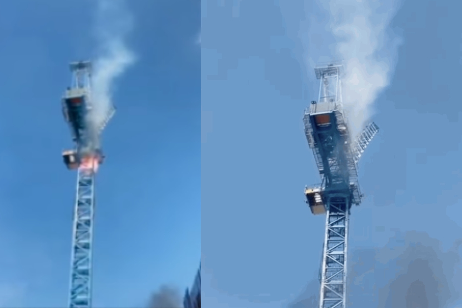 The 18-second footage, published by the construction concern group Chinat Monitor Chairman Jason Poon Chuk-hung, showed smoke pouring from a crane and fire was seen near the crane's control room.