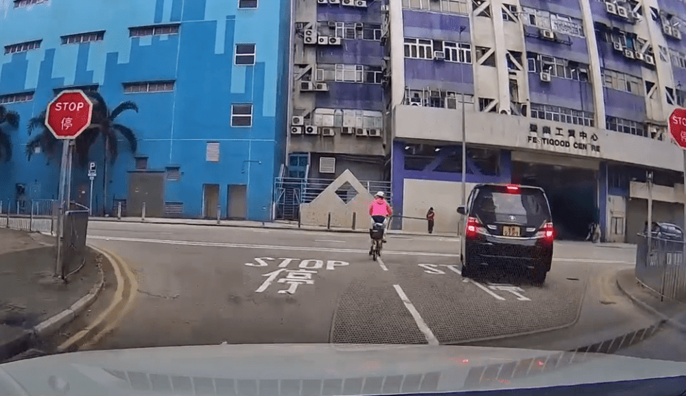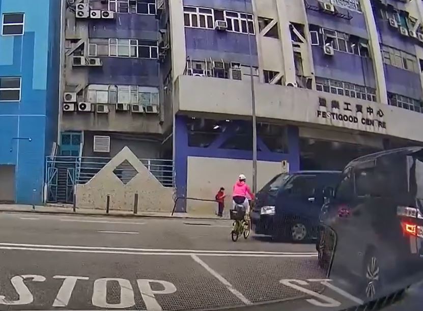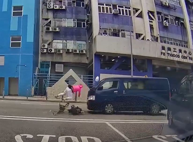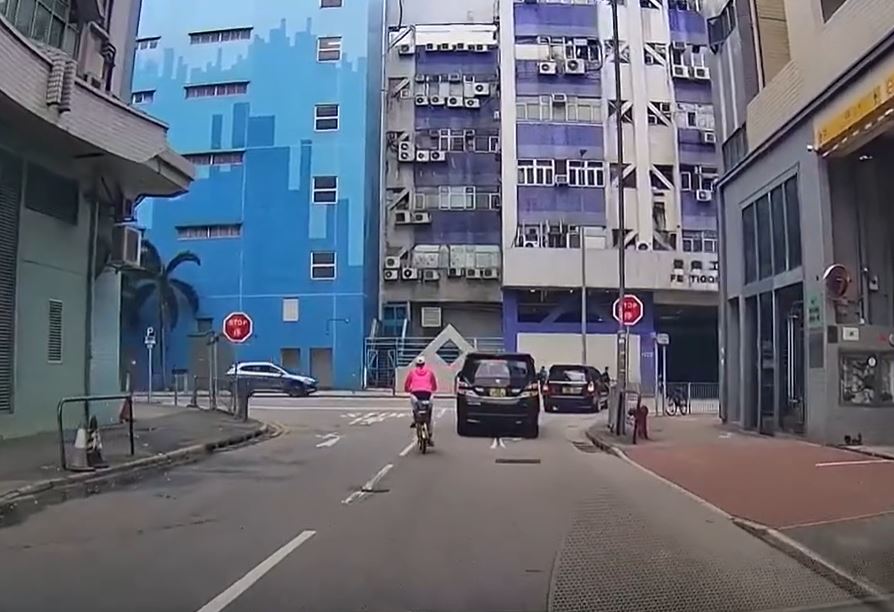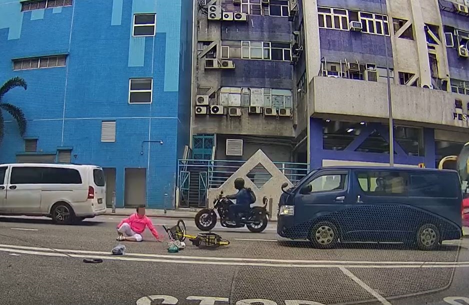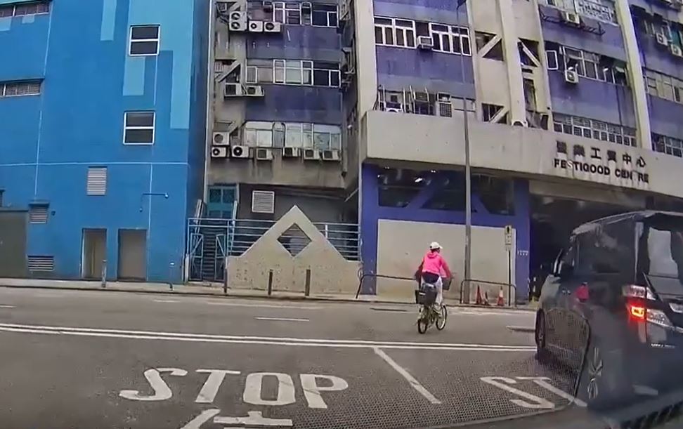 According to a video that leaked online today, a woman was cycling in Fanling at 7.38 am and attempted to turn right into the other lane as she reached the junction of Lok Yi Road and On Kui Street.