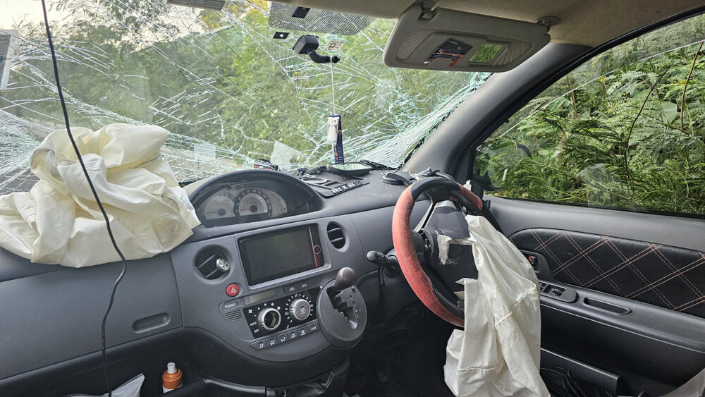 The door on the left suddenly opened, which resulted in a foreign domestic helper and the baby boy being thrown out of the car. It was learned that she was not wearing a seat belt.