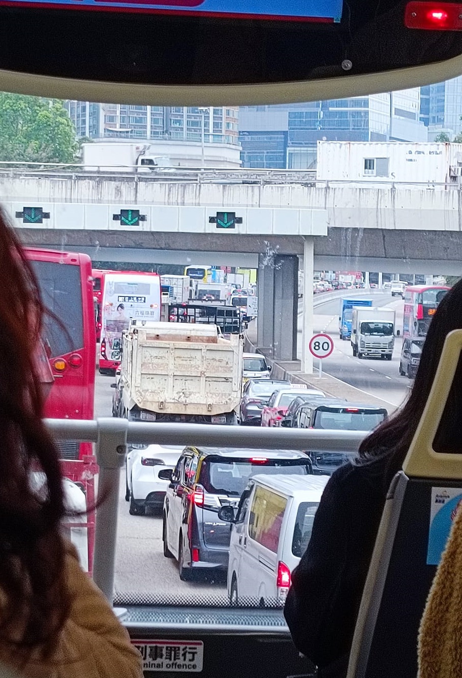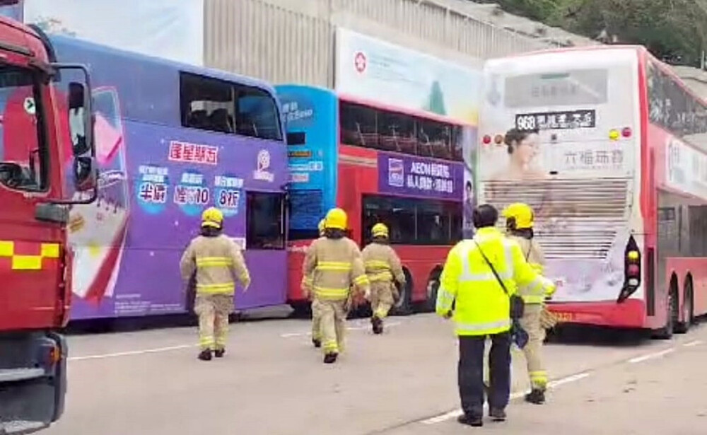 The incident, which occurred at around 12.01 pm inside the Island-bound section of the cross-harbor tunnel, involved two double-decker KMB buses.