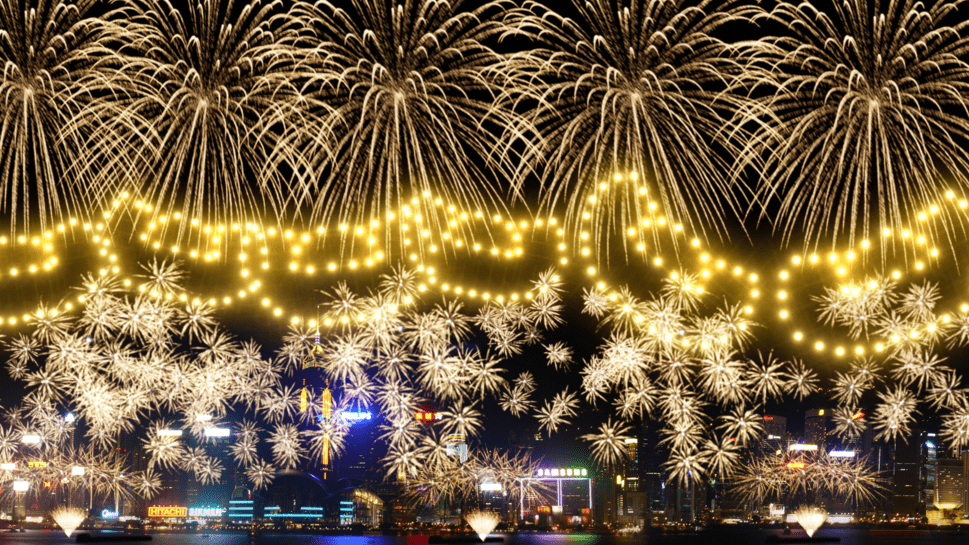 Three barges will fire 23,888 fireworks shells over Victoria Harbour.