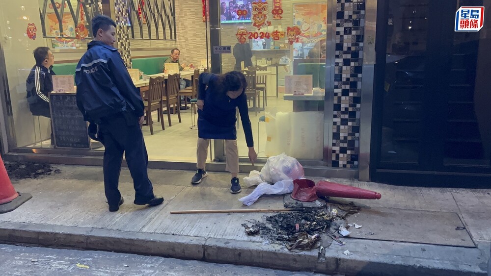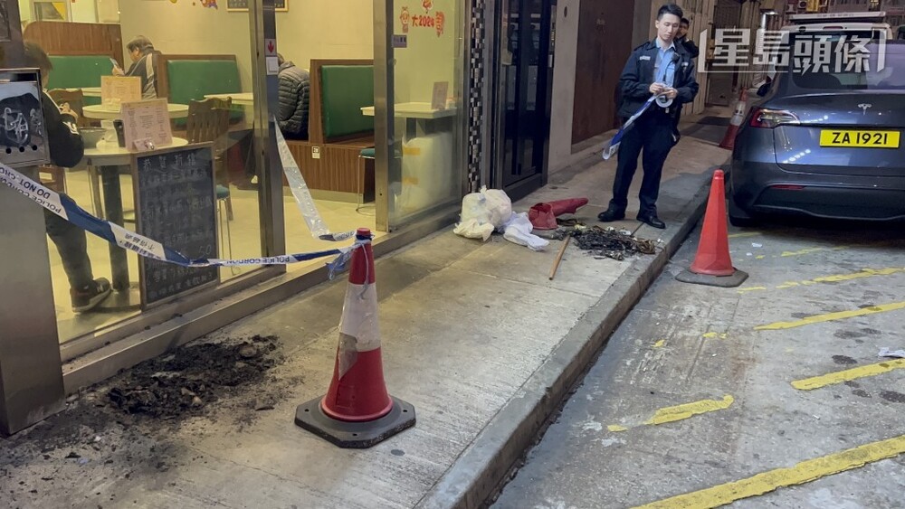 At about 5 am, police received a report that there were signs of burn marks on the restaurant door on Lok Kwan Street.
