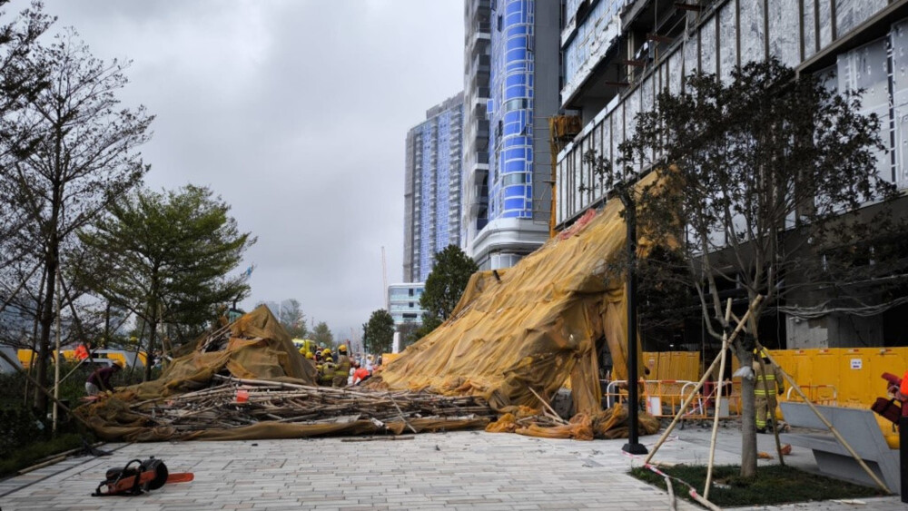 The incident occurred at around 4 pm on the site of residential project Pano Harbour on Shing Fu Lane, with the scaffolding - 15 meters tall and eight meters wide - falling from 19 stories above and hitting three women and a man.
