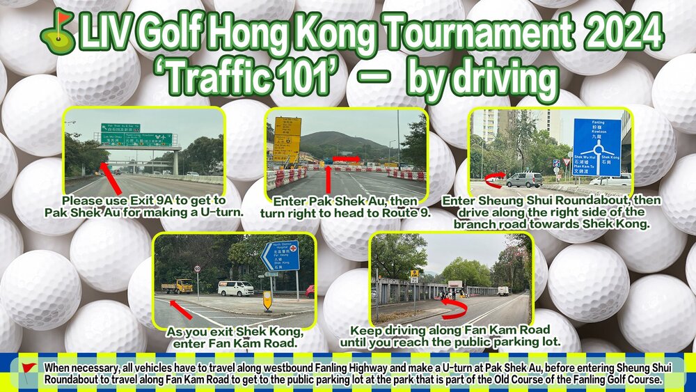 Around 2,000 to 3,000 parking spaces will be allocated to golf spectators, while others coming via taxi are required to stop near Ching Shing Road and walk about five minutes to the Fanling Golf Course.