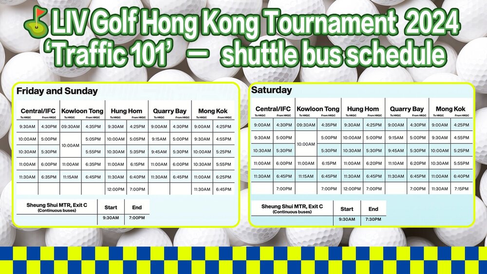 The organizer will provide shuttle bus services to and from Hong Kong Golf Club at Central, Kowloon Tong, Hung Hom, Quarry Bay, and Mong Kok.