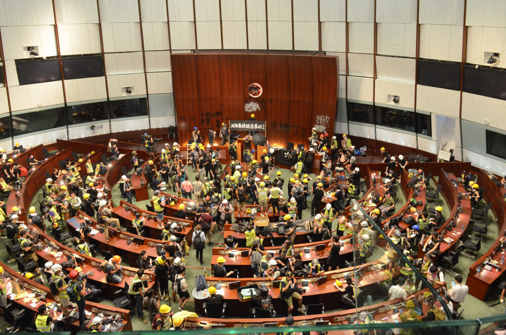Lam Kam-kwan, 28, was handed the heaviest term of six years and ten months as deputy judge Li Chi-ho of the District Court noted it was Lam who damaged the glass door of LegCo which led to further storming.