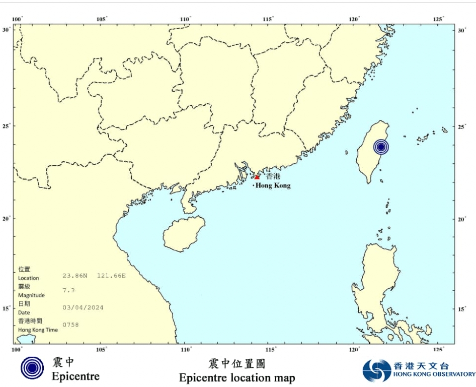 A magnitude 7.3 earthquake was recorded on Taiwan’s southeast coast on Wednesday, with more than 100 Hongkongers reporting feeling tremors, said the Hong Kong Observatory.