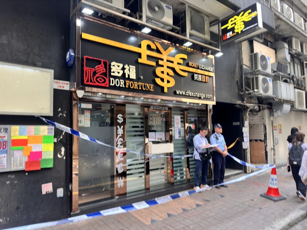 The incident occurred around 1 pm today when the man -- holding a pistol-shaped object -- entered the money exchange shop on How Ming Street and robbed about HK$177,000.
