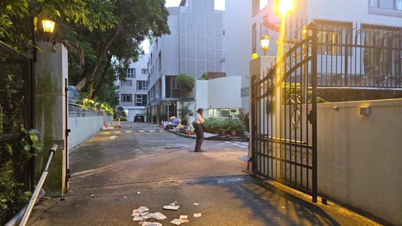 The incident occurred around 5 am when the guard surnamed Ip went on patrol around the residence and saw a 2-by-2-meter gate tilting to one side. He attempted to fix its position but the hinge loosened and the gate fell on top of him.