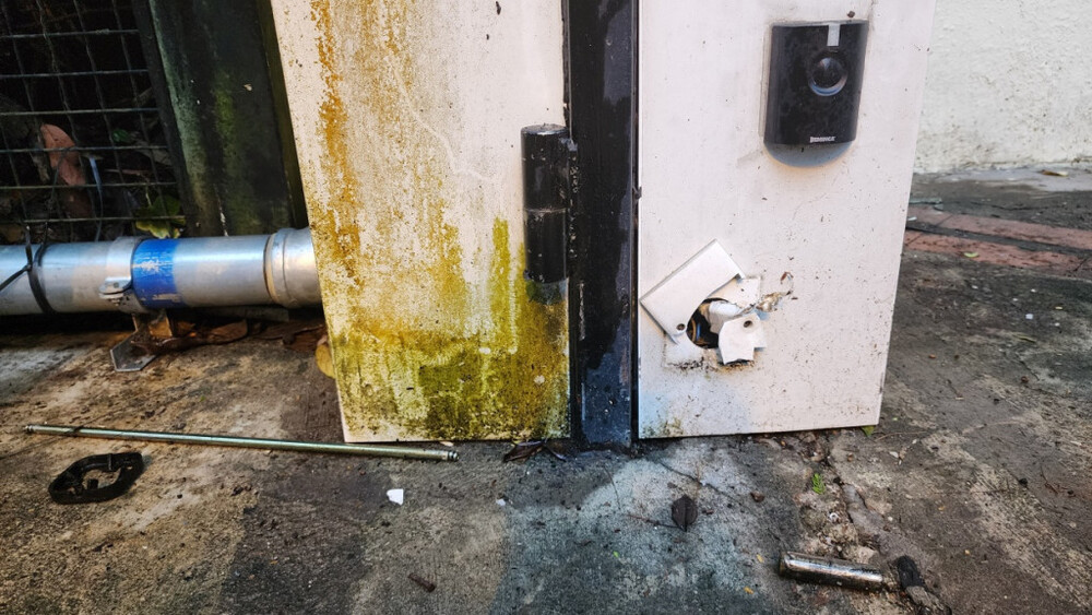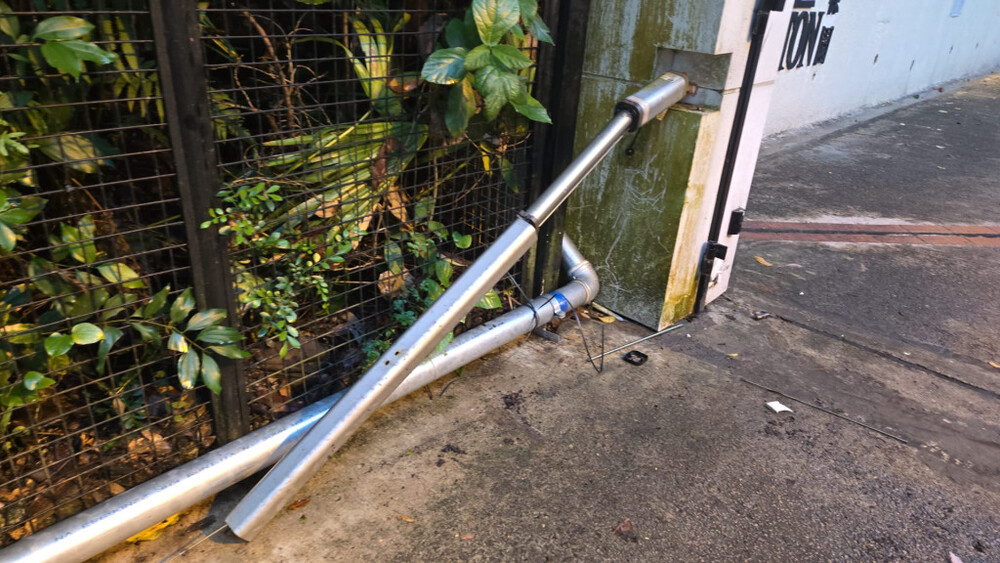 Trapped underneath the gate, Ip cried for help as he sustained injuries to his forehead and right arm, prompting a colleague to file a police report for him.