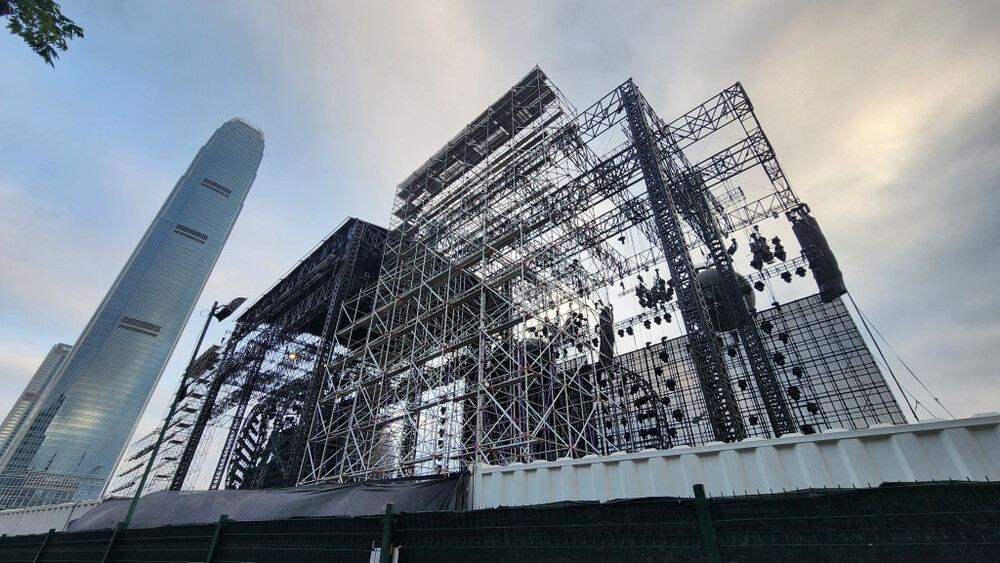 A worker fell from a 2-meter-high stage and lost consciousness as he was dismantling Taiwanese rock band MayDay’s concert stage at the Central harbourfront on Friday morning.