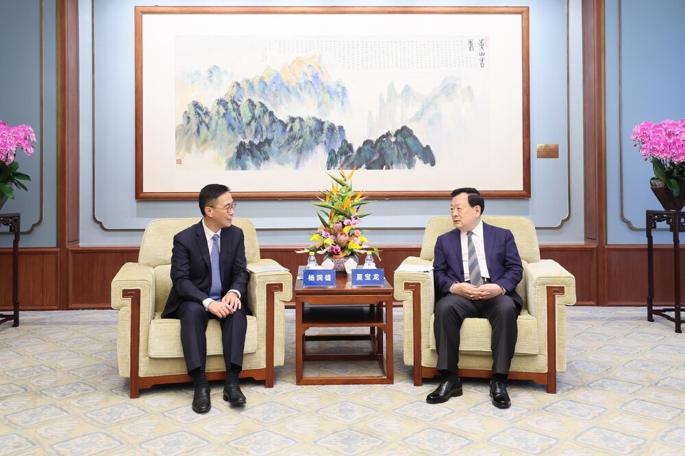 Yeung on Thursday met with the Director of the Hong Kong and Macao Affairs Office of the State Council, Xia Baolong, and introduced the latest work of the Culture, Sports and Tourism Bureau.