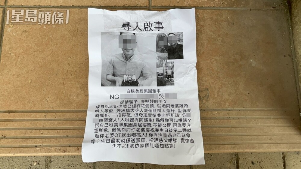 There were also some bills found outside that accused a person who is suspected to be a director of the Midland Realty of being a love scammer.