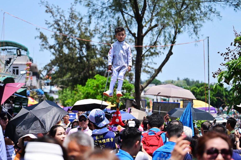 The Piu Sik Parade - one of the must-see events of the annual Cheung Chau Bun Festival – has drawn thousands of people lining the streets on Wednesday to witness the extraordinary event.