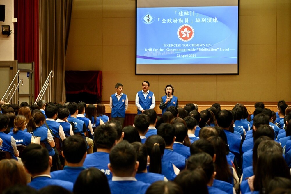 The SAR government held the exercise last month, simulating a situation where a super typhoon was approaching Hong Kong, with civil servants mobilized to assist residents in low-lying areas.