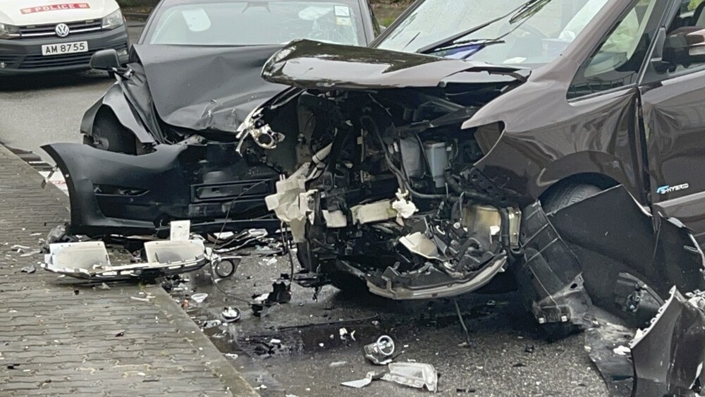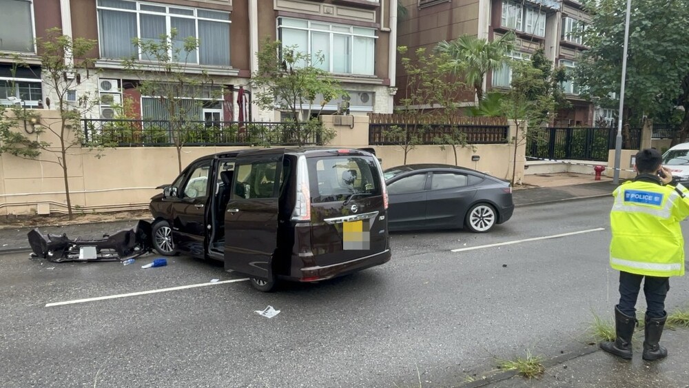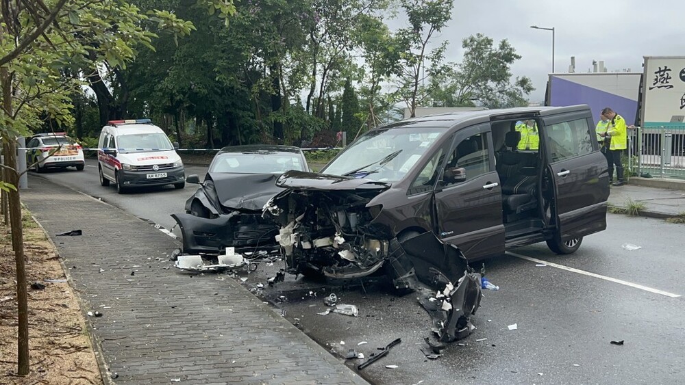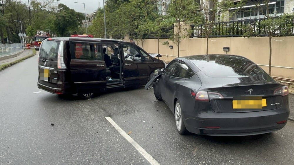 The accident happened at around 1.15 pm when a seven-seater was driving along Sam Mun Tsai Road towards Sam Mun Tsai Village and crashed head-to-head with a Tesla that was driving towards Tai Po.
