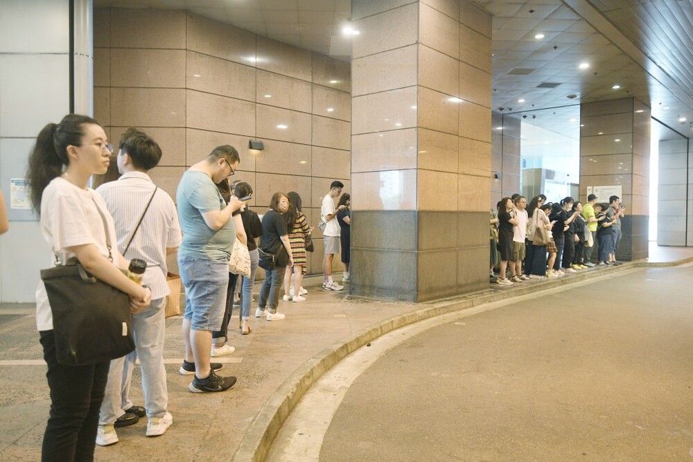 Some even took selfies in the rain at the entrance of the KITEC, and there was a long queue at the shuttle bus waiting area at Kowloon Bay MTR Station.