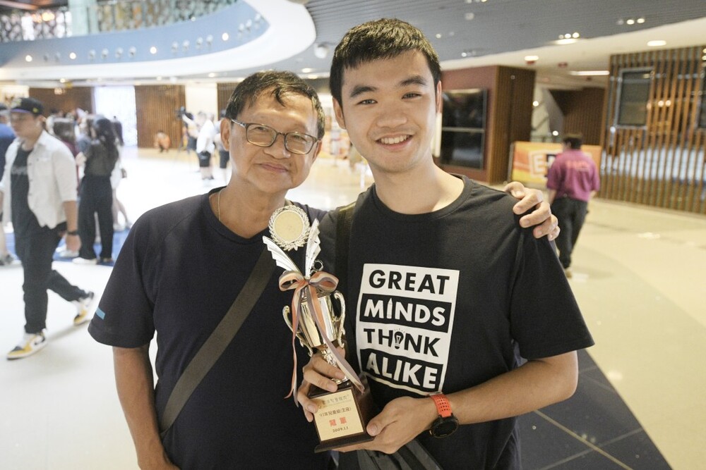 Lam and his father came to say goodbye to the center, along with the trophy he had won from a chess competition at KITEC when he was a child. They took photos to remember the special place where he first won a trophy.