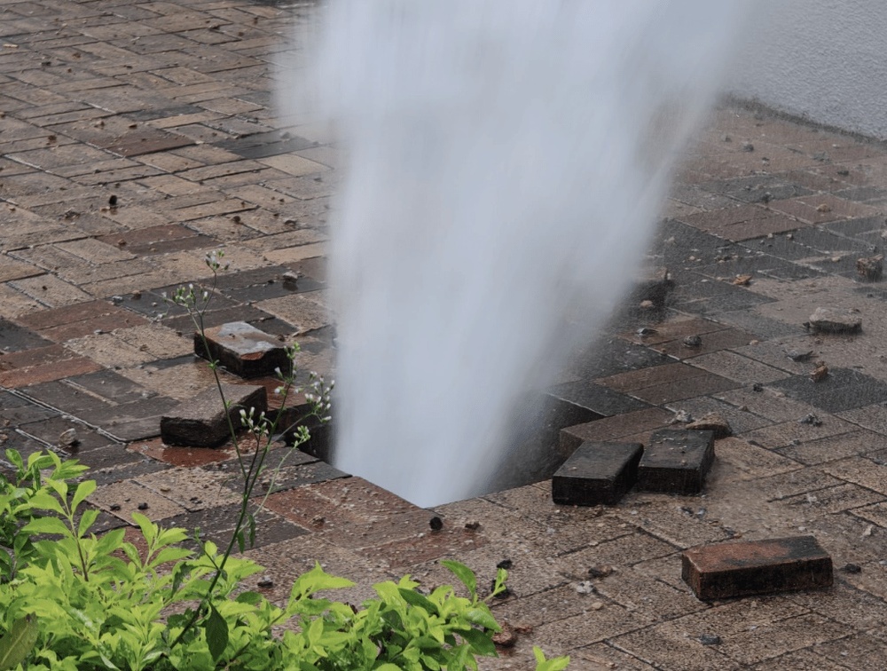 According to a live source, it was seen that the water column appeared like a fountain, shooting onto the campus of the school, soaking the ground making it slippery.