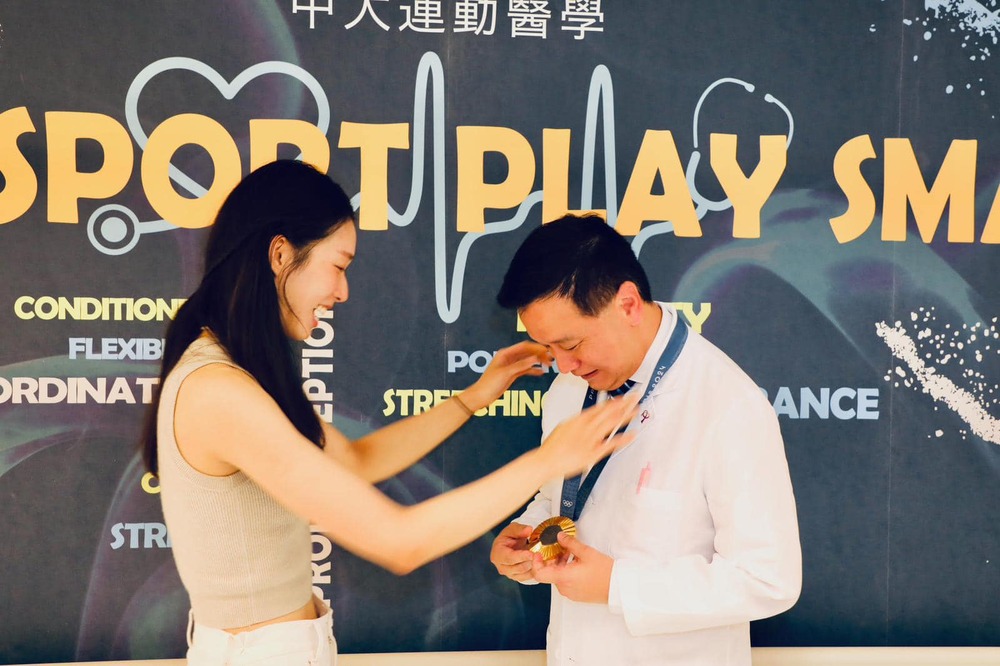 Kong also presented Yung with the gold medal she won at the Paris Olympics, hanging the medal around Yung’s neck showing her appreciation.