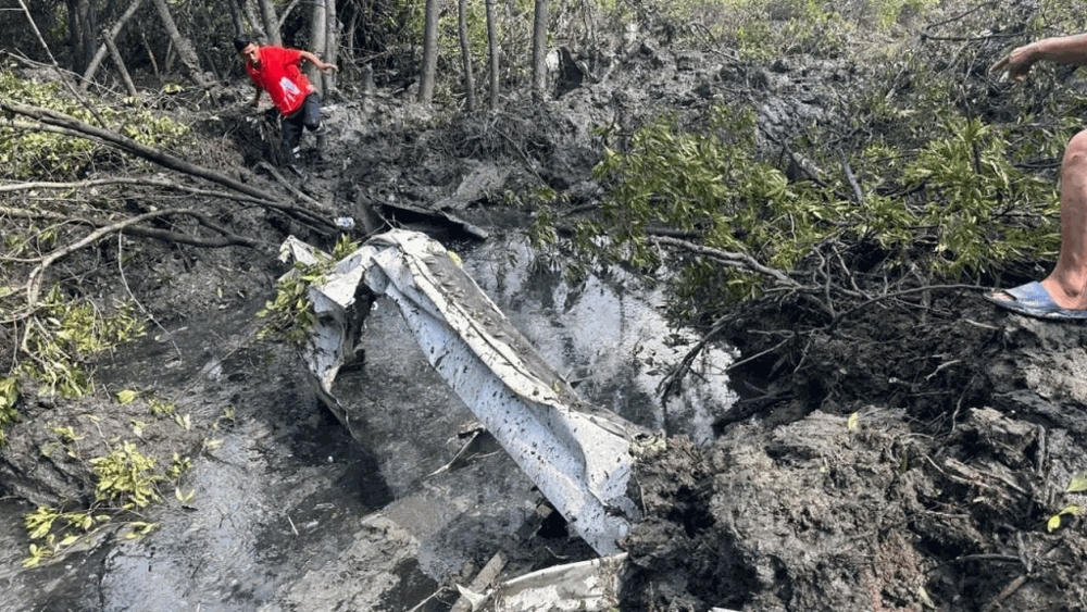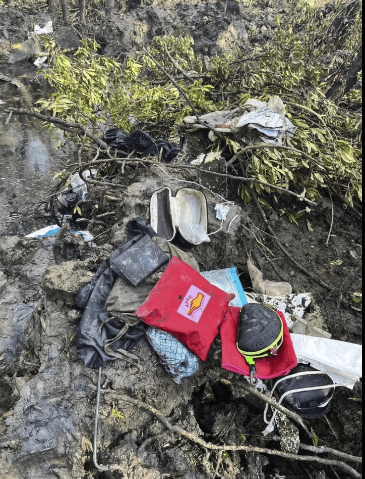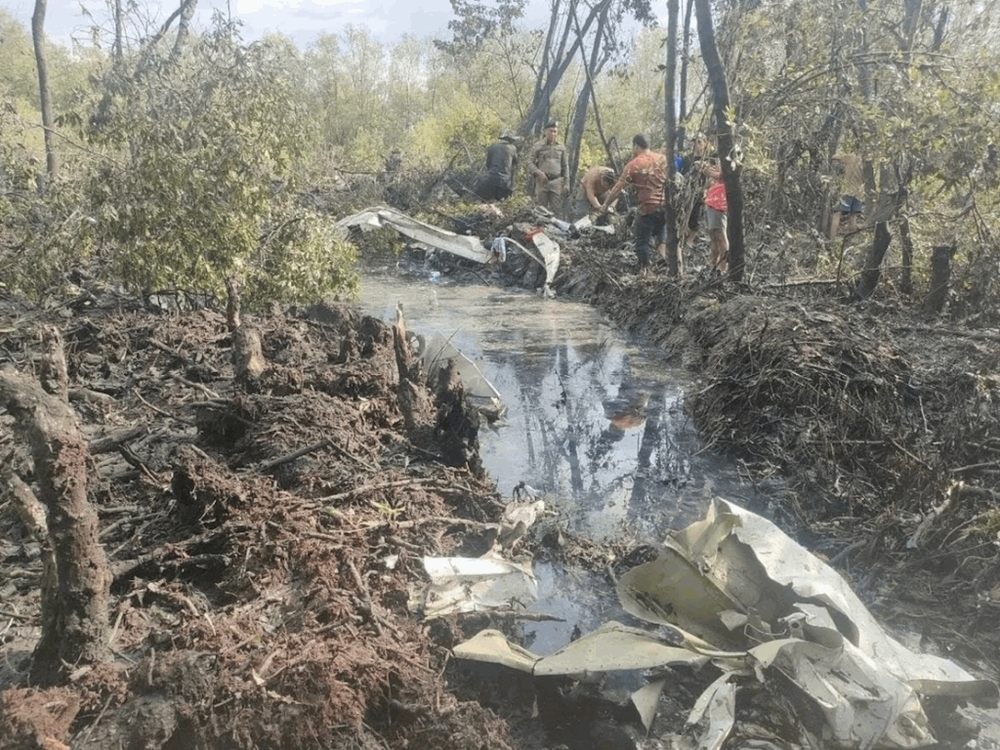 A video from the scene showed highly fragmented pieces of the plane in the water in the middle of a wooded area. A rescuer could be seen in muddy water up to his chest.