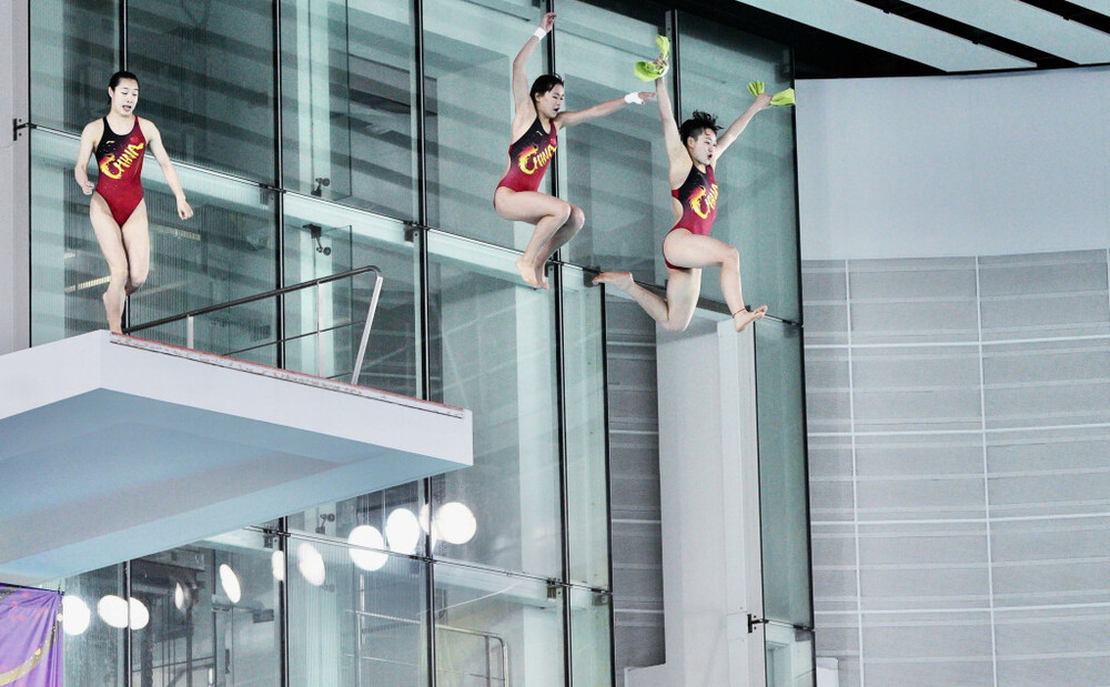 The audience was also able to witness first-hand Chinese diving pair Quan Hongchan and Chen Yuxi’s “splash-disappear magic”. The pair won gold in the women's synchronized 10-meter platform event in Paris.