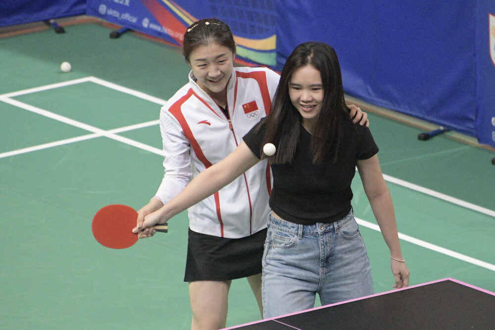 In badminton, the national team’s women's doubles players Chen Qingchen and Jia Yifan teamed up with Hong Kong duo Lianne Yeung and Yeung Pui-lam in an exhibition match. The demonstration also saw Chinese mixed doubles pair Zheng Siwei and Huang Yaqiong interact with young athletes.