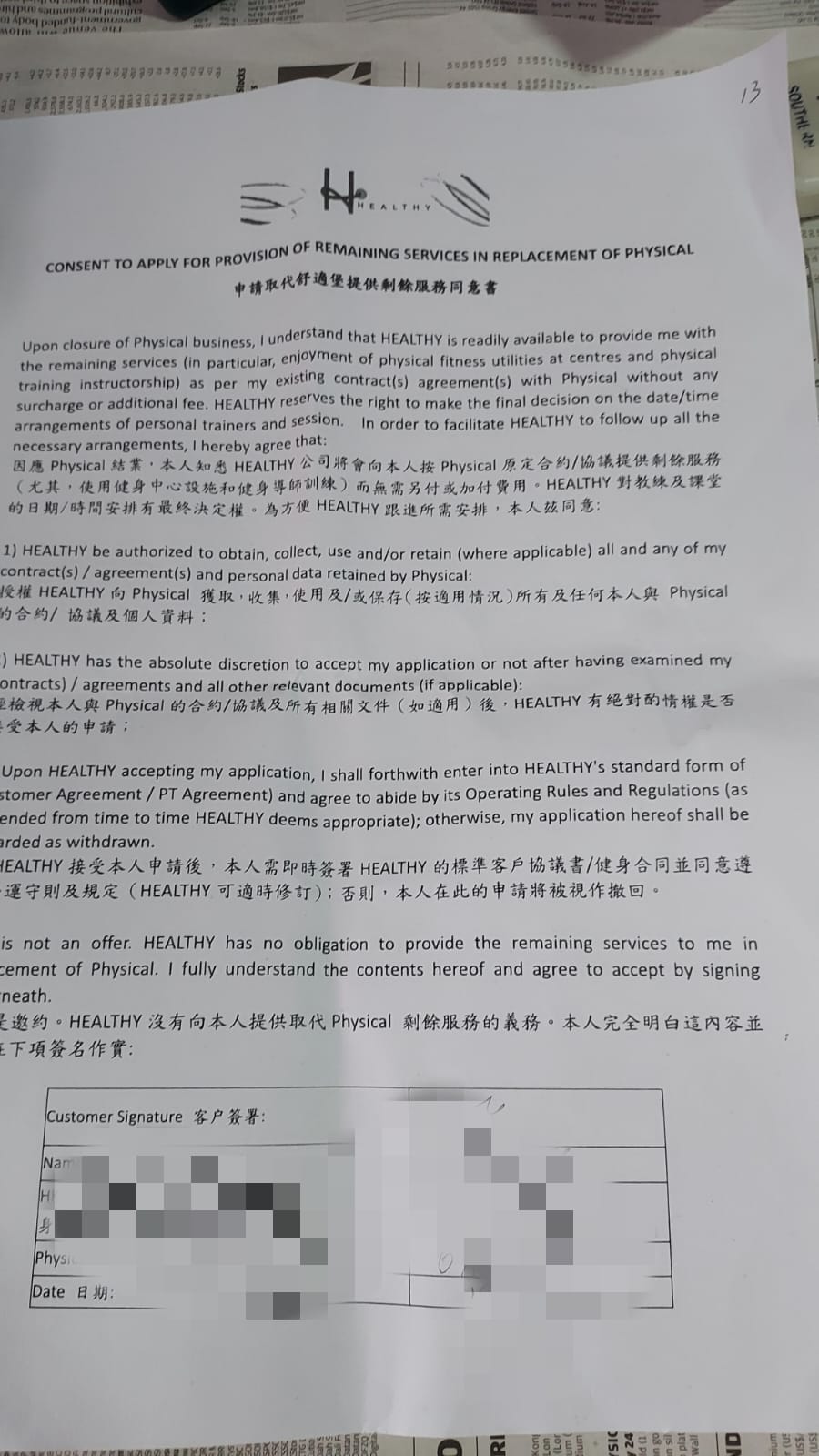 It is required by Wan Chai HEALTHY that existing Physical Fitness members sign a consent form to transfer their remaining services.