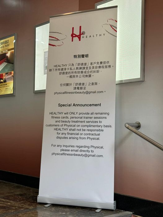 "HEALTHY" has announced that they will provide all remaining fitness cards, personal trainer sessions, and beauty treatment services free of charge to former "Physical Fitness" customers. They also clarified that they are not responsible for any financial or contractual disputes related to the previous management.