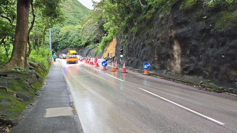 The one-lane-two-way traffic arrangement is being implemented on Stanley Gap Road between Chung Hom Kok Road and Tai Tam Road in Stanley due to a landslide that occurred late on Sunday.