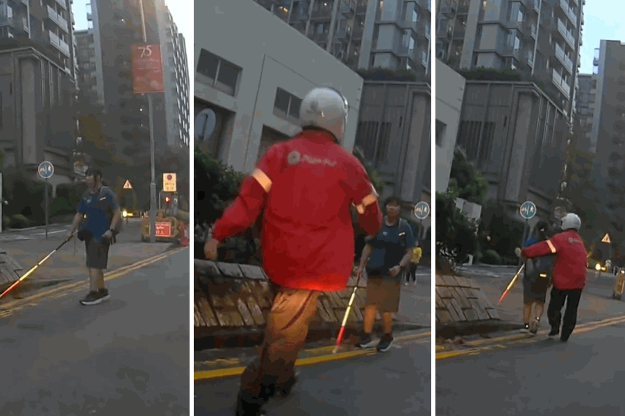 The viral online video showed the deliveryman, surnamed Lee, coming across the person with a white cane walking on the roadway on Tuesday (Sep 24) at Pak Shek Kok.