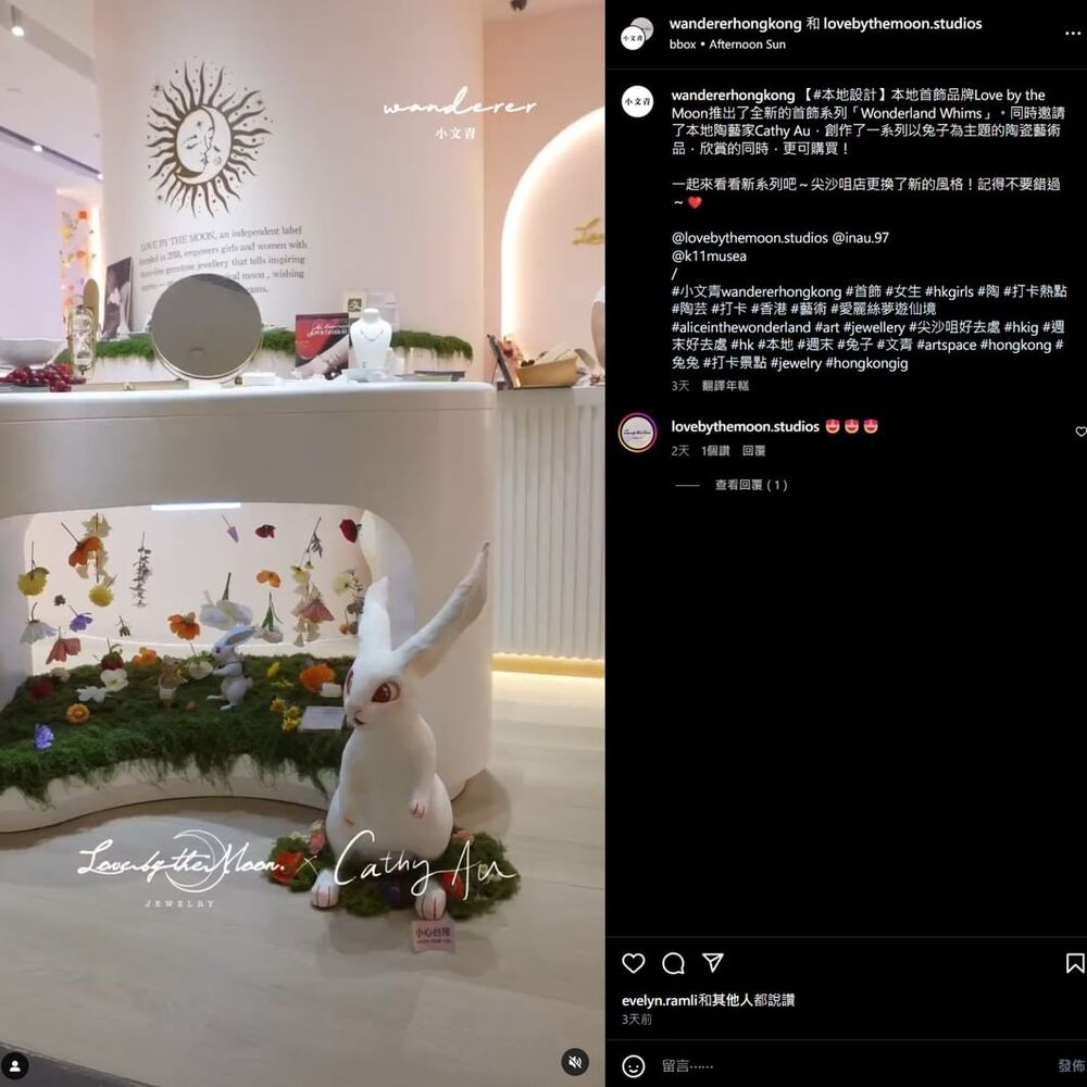 The shop “Love by the Moon” at K11 MUSEA wrote on social media Wednesday that a rabbit sculpture on display at the shop, an art piece by a local sculptor to promote the shop's new jewerly collection, was found lying on the floor with its legs broken earlier.