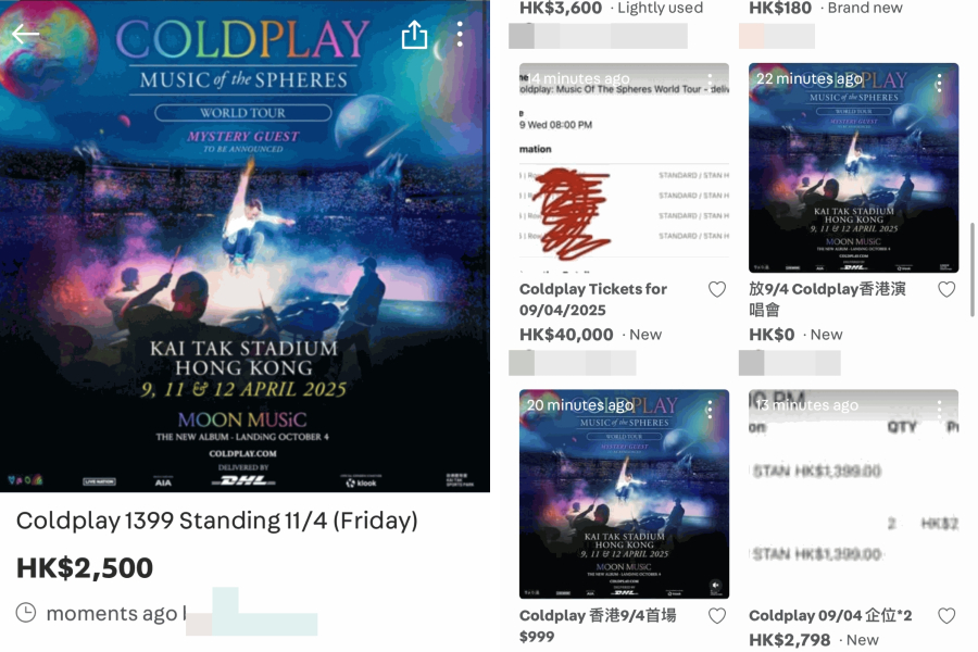 The first batch of tickets for iconic British rock band Coldplay’s concert in Hong Kong sold out in just about half an hour this morning, with some scalpers promptly reselling the tickets at significantly inflated prices, as high as HK$3,000 per one.