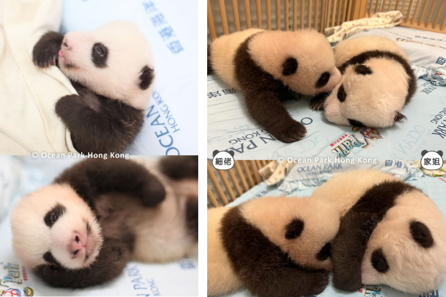The older female cub weighs 2.7 kg, while her younger brother weighs 2.54 kg. Both cubs are usually separated from their mother Ying Ying by a golf club due to the significant weight difference.