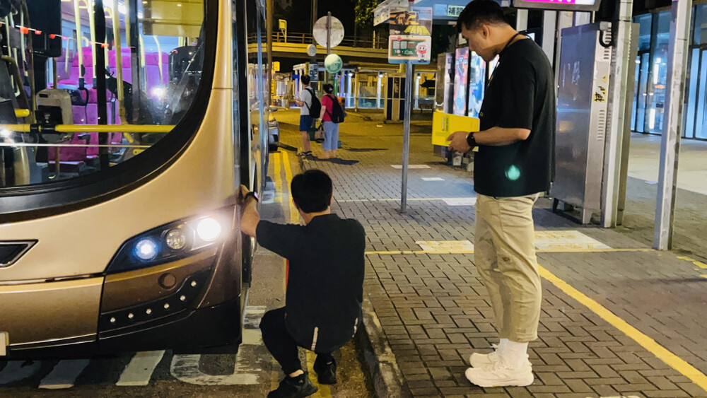 Police are hunting down a man in his 30s after pushing a pedestrian off the sidewalk and into a moving bus as it was departing from a bus stop in San Po Kong.