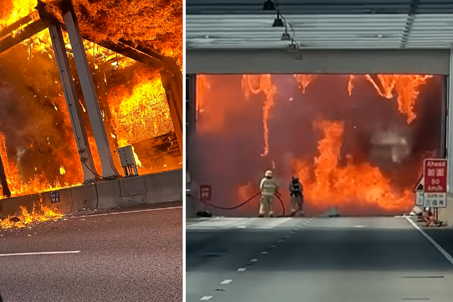 (Video) Flames erupt from noise barriers halting traffic on Cheung Pei Shan Road