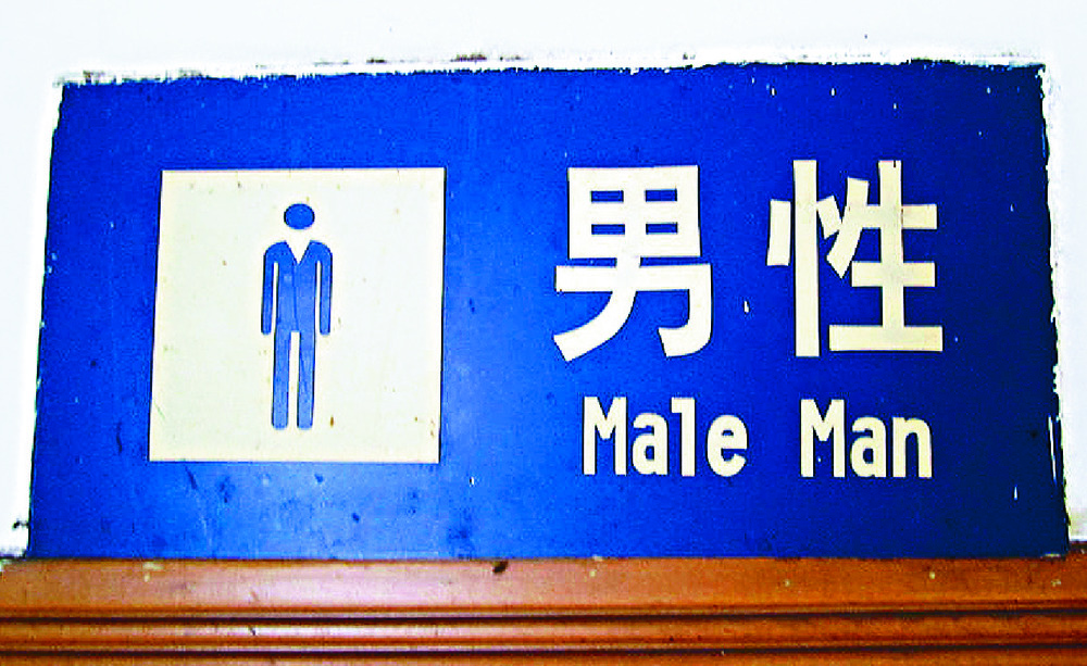 * * *The English in this sign from China seems redundant, but may be useful in the UK where there's wide debate about various types of non-conforming sexual identities.