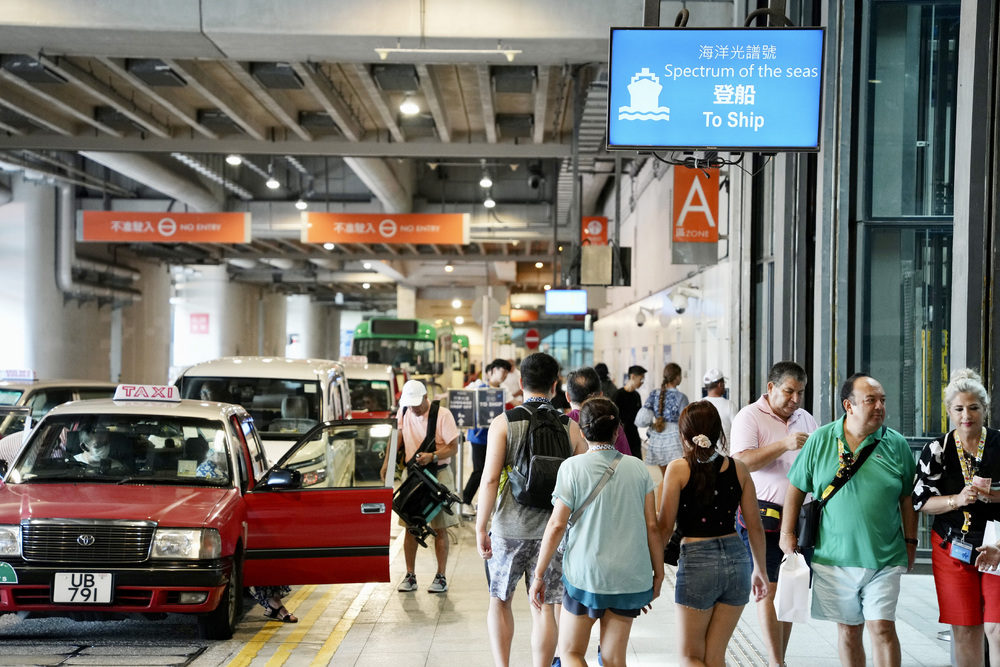 Around 3,000 passengers aboard the Celebrity Solstice started to leave the arrivals hall around 7 am, with the majority opting for taxis or taking the free shuttle service to APM Mall in Kwun Tong.