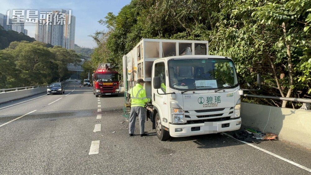 At 8.29 am today, a cleaning company truck was driving along Lion Rock Tunnel Road toward Shatin.
