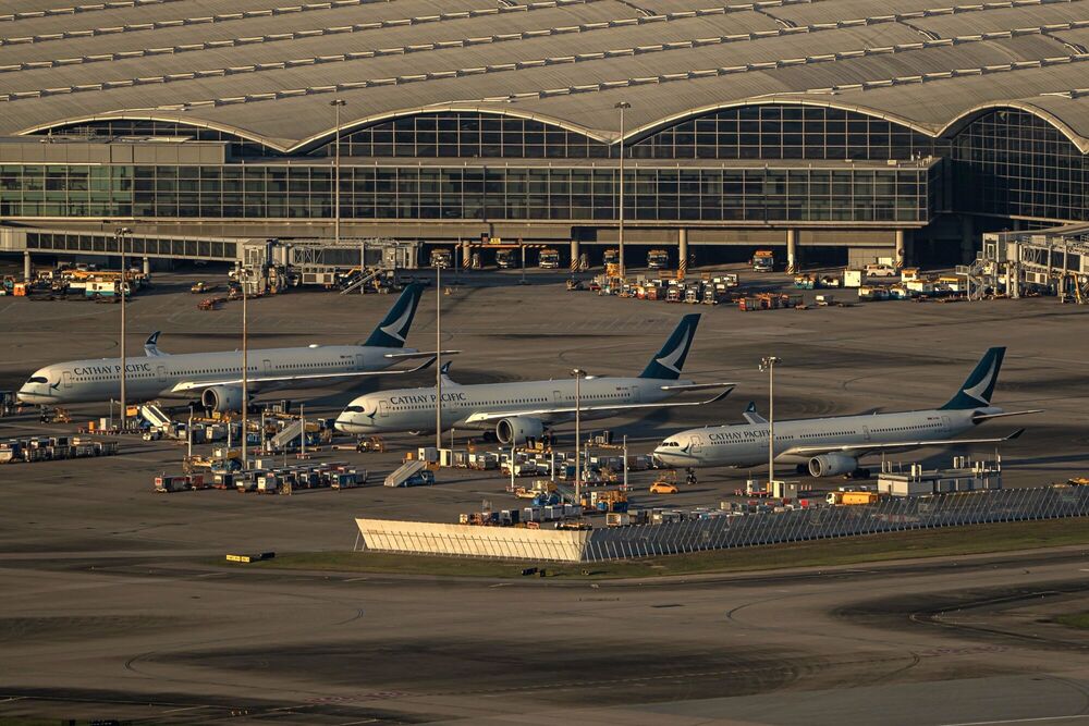 Cathay Pacific Airways Ltd. aircraft on the tarmac at Hong Kong International Airport in Hong Kong, China, on Thursday, Nov. 28, 2024. (Bloomberg)