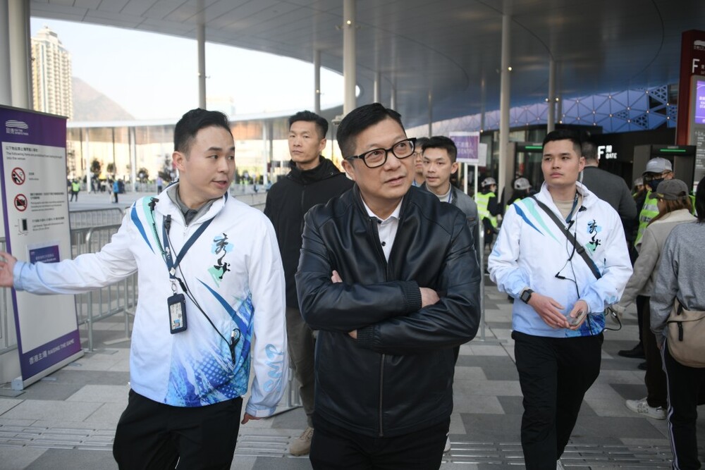 Secretary for Culture, Sports and Tourism Rosanna Law Shuk-pui and Commissioner for Sports George Tsoi Kin-pan also visited the Park to inspect the arrangement and the audience's views.