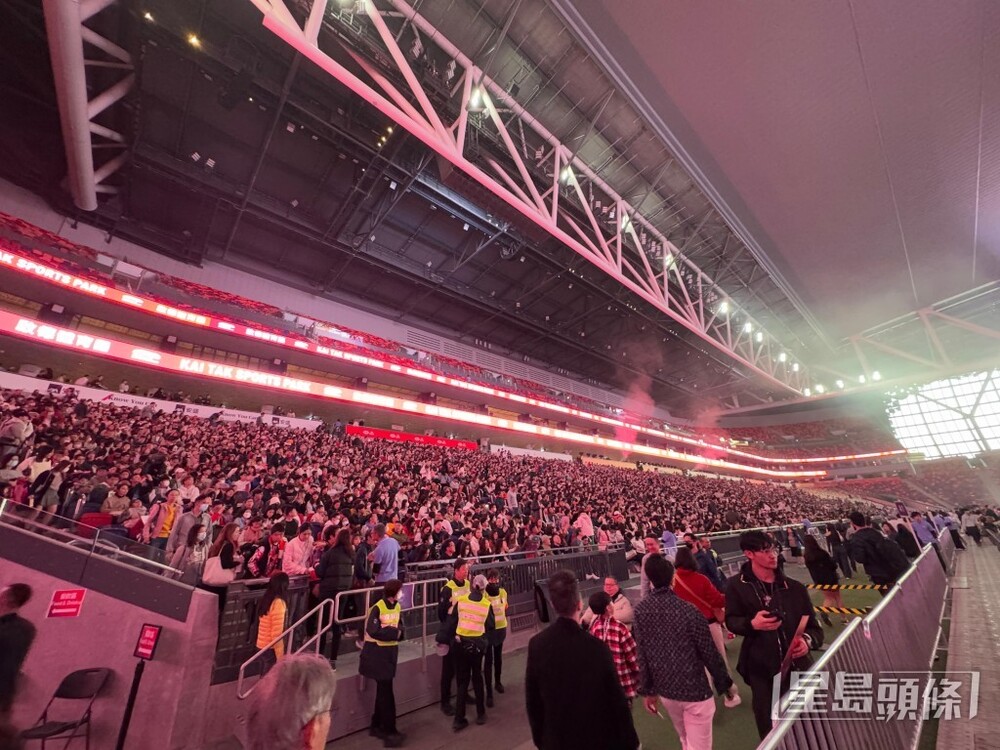 The first test concert at Kai Tak Stadium, FOUR in LOVE CHARITY LIVE 2025, which was scheduled to commence at 6pm today, was postponed for 30 minutes as some hundred of 18,000 spectators were still queuing as of 6.20 pm despite the admission started two hours ahead.
