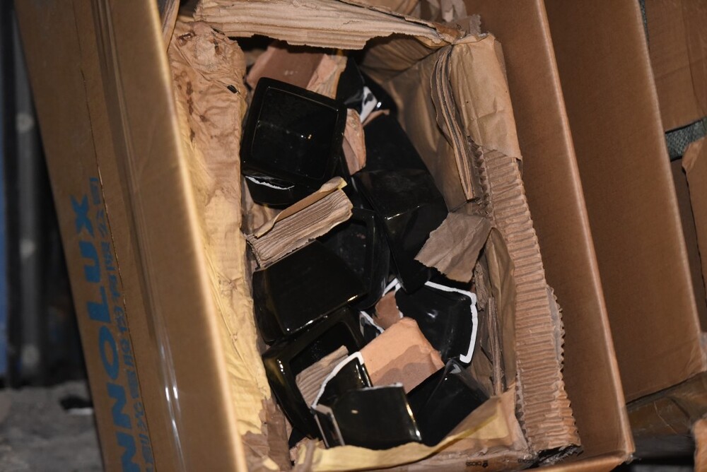 Officers first found ceramic products inside cardboard boxes placed near the door of the container, while the batch of illicit cigarettes was found deep inside the container.